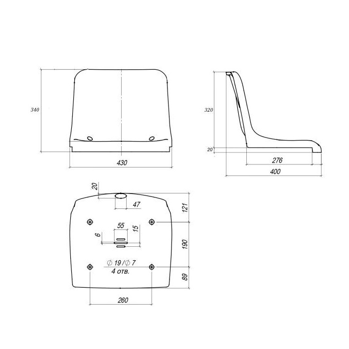 Нижняя и верхняя часть сиденья усилена ребрами жесткости: вертикальных ребер жесткости 8 шт, горизонтальных 4 шт., каждая точка крепления дополнительно усилена еще четырьмя ребрами жесткости. Толщина ребер жесткости 3 мм и 4 мм.