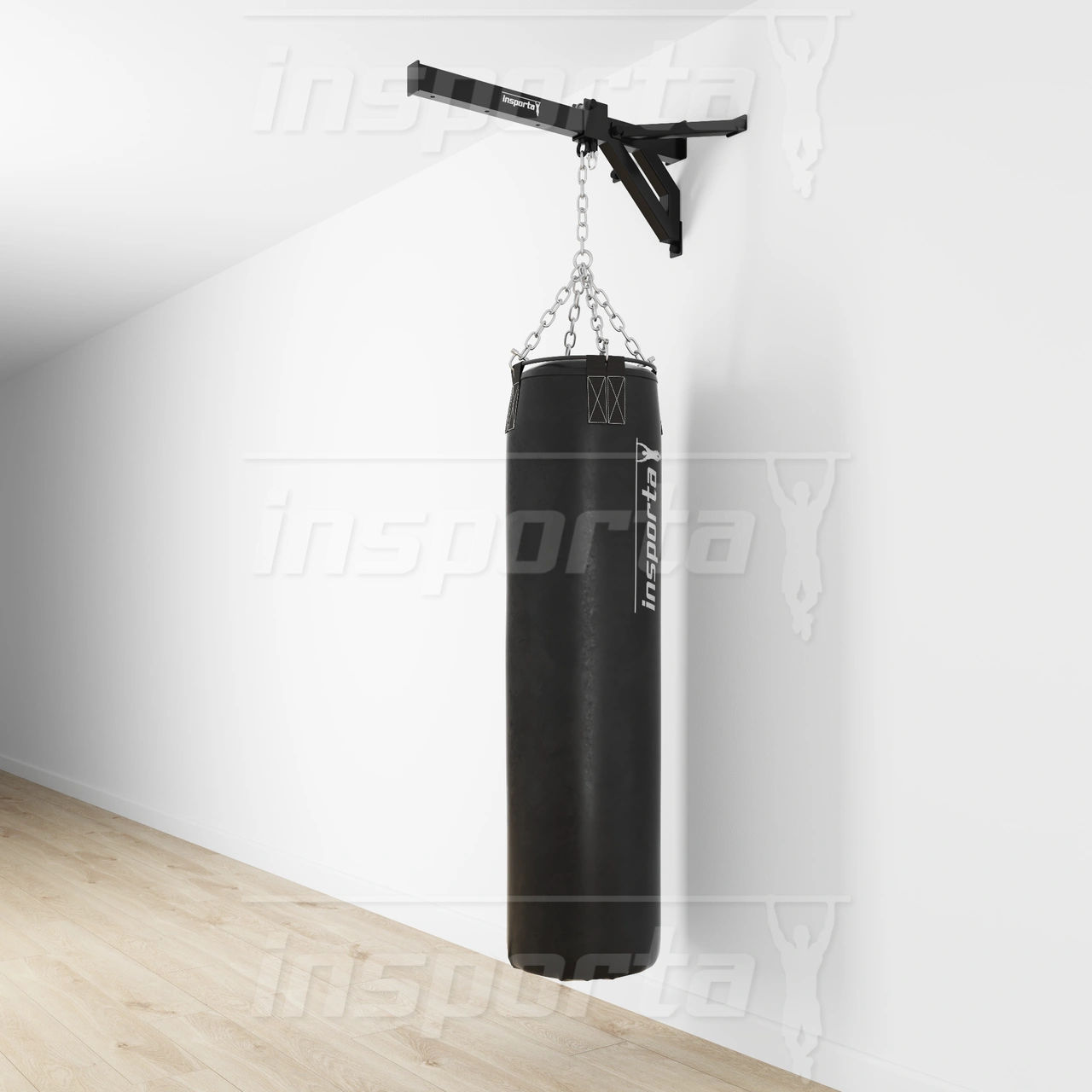 Крепление к стене осуществляется шестью анкерными болтами 10*80 мм из комплекта. Стена для установки боксерского кронштейна должна быть кирпичная или из монолитного бетона, не допускается установка на стены из гипсокартона, газоблока и прочих пустотелых материалов. Кронштейн для мешка может быть установлен на деревянную или фанерную стену, способную выдержать предполагаемую нагрузку, крепеж для установки на деревянные поверхности приобретается покупателем.