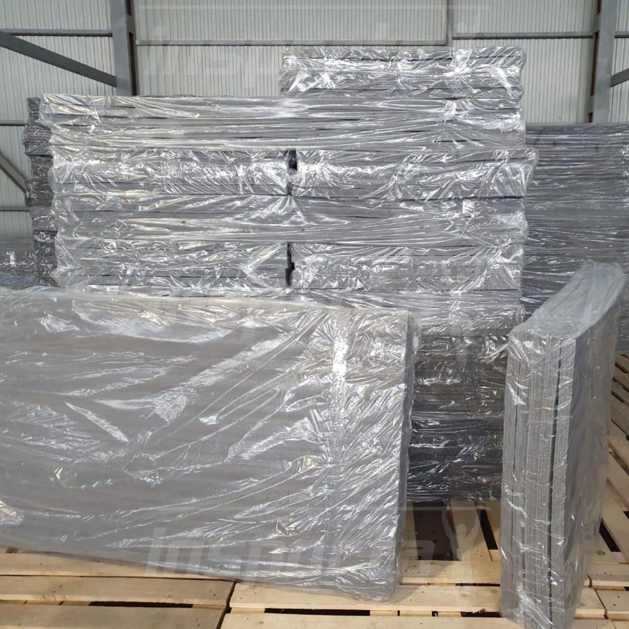 Доказанная плотность данных матов составляет 25-27 кг/м3. Это обеспечивает небольшой вес и удобство при транспортировке и монтаже, экономию на доставке. Маты ППЭ-НПЭ производят методом экструзии из полиэтилена высокого давления, расплавленные гранулы вспенивают с помощью газа. Слои между собой соединяют термически, спаивают в печи методом теплого клина.